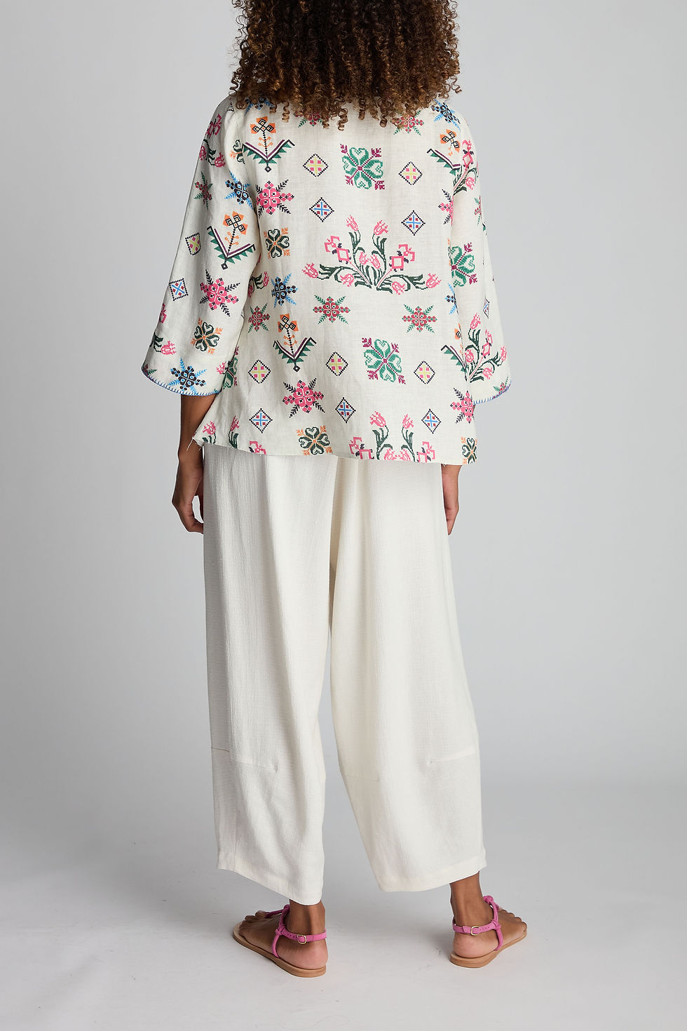 Sahara Crosstitch Print Linen Shirt GRT6279